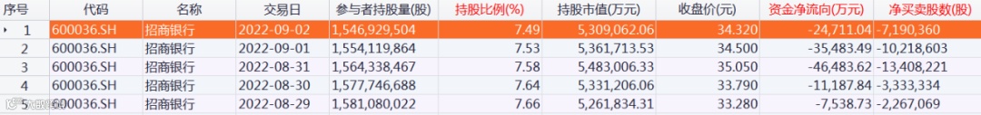 北向资金持股招商银行明细数据