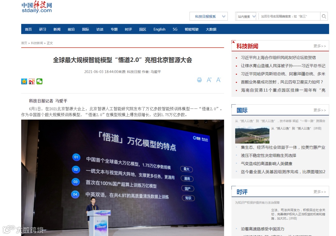 签约仪式上,中奥科技副总裁、北京中奥总经理陈海峰表示,很荣幸见证了从“悟道1.0”到“悟道2.0”中文、多模态、认知、蛋白质预测等系列模型更高层面的跨越,中奥科技多年来利用大数据和人工智能技术为政府数字化改革提供服务,希望通过“悟道”平台赋能数字中国。