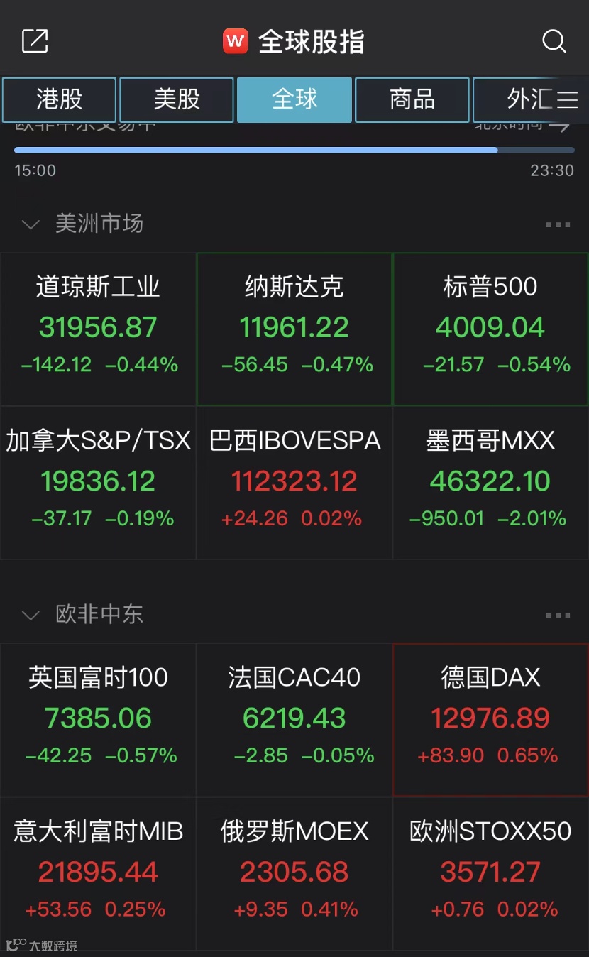 当地时间8月30日,欧洲主要股指冲高回落,英国富时100指数、法国CAC40指数小幅下跌。国际原油价格持续走低,NYMEX原油期货跌逾4%。美股三大指数高开低走,开盘后均出现跳水走势,马斯克宣布弃购的推特跌逾1%。百度在公布二季度业绩后高开低走,大跌逾8%。