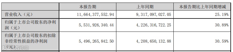 今年上半年,泸州老窖实现营业收入116.64亿元,同比增长25.19%;实现归属于上市公司股东的净利润55.32亿元,同比增长30.89%;基本每股收益3.76元。在高端白酒企业中,泸州老窖上半年的营收和净利增幅均排名第一。