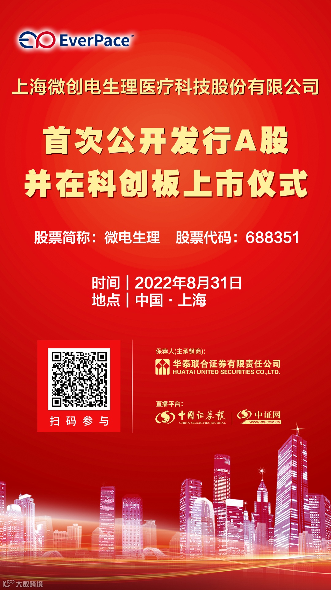 微电生理首次公开发行A股上市仪式8月31日在中证网直播