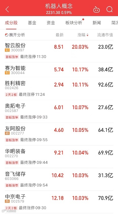 今日上午,机器人板块全面爆发,上演涨停潮,其中智云股份迎来20%涨停。