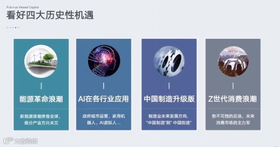 具体到行业方向,周应波表示主要看好四大领域的投资机会:能源革命的浪潮、人工智能在各行业的应用、中国制造的升级版以及新时代的消费和互联网浪潮。