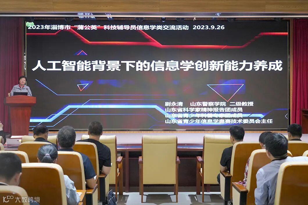 本次培训邀请山东警察学院二级教授,山东省科技进步一等奖获得者,山东青少年信息学技术委员会主任尉永清和东营市实验中学学科中心主任,科创社团之信息学奥赛编程社团辅导教练万班老师作为主讲。旨在全面推进落实《淄博市青少年“蒲公英”科技教育三年行动计划》,提高全市中小学信息学竞赛科技辅导员专业水平,尉教授做了题为《人工智能背景下的信息学创新能力养成》的专题报告,针对现阶段世界人工智能最前沿技术发展、信息学奥林匹克竞赛的基本情况,以及如何培养信息学创新能力等方面做了详细解读,并对淄博近年来信息学奥赛参赛情况进行了分析,寄语淄博师生取得更好的成绩。