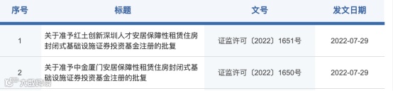 7月29日晚间,证监会官网显示,国内首批两单保租房REITs——红土创新深圳人才安居REIT、中金厦门安居REIT均正式获证监会注册批复。同日,华夏北京保障房中心REIT获证监会及上交所受理。
