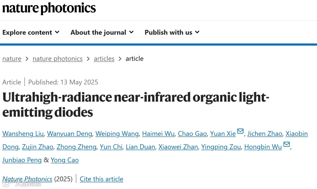 近日,华南理工大学Wansheng Liu,Yuan Xie,吴宏滨Hongbin Wu, 曹镛院士Yong Cao等,在Nature Photonics上发文,开发了基于受体-供体-受体有机半导体的近红外有机发光二极管,具有极大抑制的单线态-三线态湮灭率和三线态寿命,减轻了长寿命三线态的单线态猝灭,从而在高电激发水平下,实现超高单线态密度。