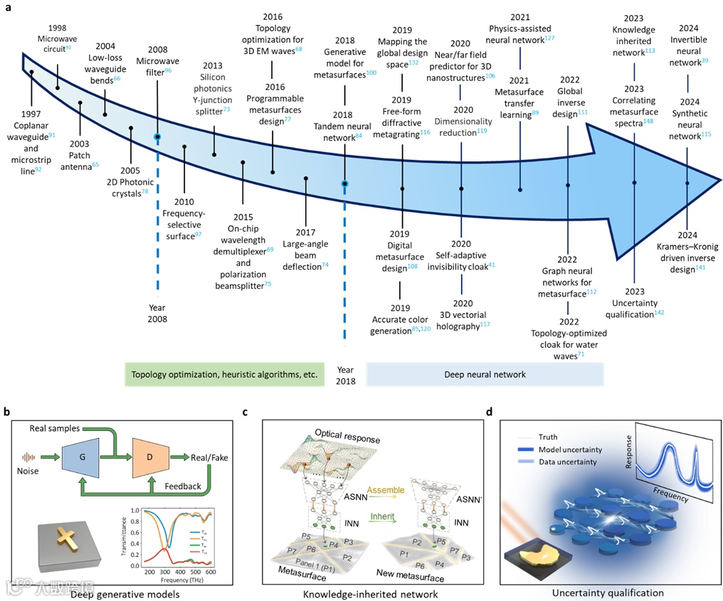 智能超材料:人工智能不仅可以加速超材料的按需设计,促进下一代智能自适应超材料器件的发展,也有助于发掘新颖的物理现象。