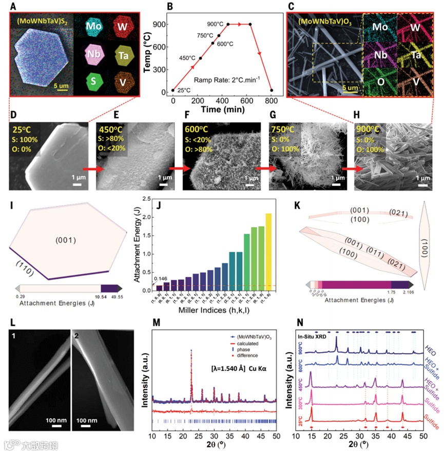 在材料科学快速演进的当下,设计出兼具高稳定性、强机械性能与复杂功能性的低维纳米材料,成为推动下一代能源、电子与极端环境工程应用的关键所在。其中,高熵材料(High-Entropy Materials, HEMs)因其多组元构成所带来的高度混乱结构和巨大的热力学稳定性,正在引发广泛关注。相比传统单组元或低组元材料,高熵氧化物(High-Entropy Oxides, HEOs)不仅拥有超高的熵稳定性,还在热、压、化学环境中表现出惊人的结构韧性。然而,迄今为止,绝大多数HEO依旧局限于颗粒形态,难以实现维度可控、生长受限结构的构筑,尤其是在一维形貌下的稳定性和物理性能研究仍属空白。而要真正发挥HEO的工程潜力,还必须探索其在极端条件下的结构转变机制、能量吸收能力以及在多场耦合下的响应行为。