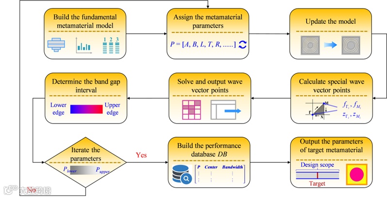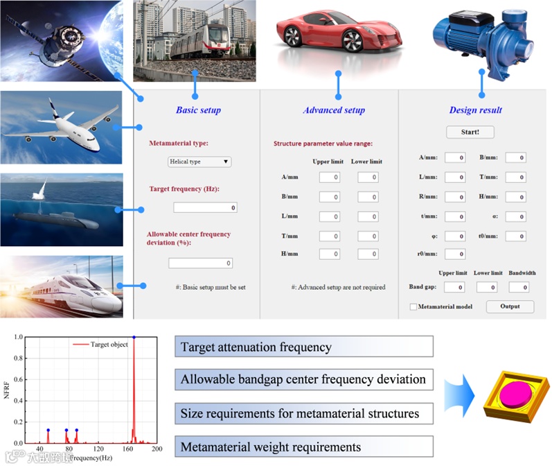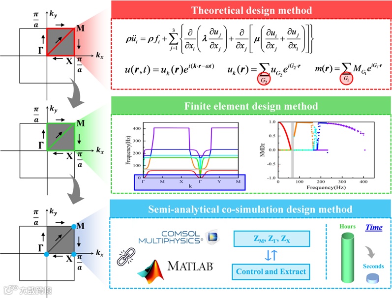 西安交通大学机械工程学院马富银教授课题组,提出一种基于半解析快速提取的弹性超结构按需设计方法,并基于COMSOL-MATLAB联合仿真平台进行了交互式快速设计。在该方法中,可以通过特殊波矢点的模态位移计算快速判别吸振带隙区间,从而实现弹性超结构的半解析带隙提取。同时,通过迭代设计与遗传算法优化,实现了超结构性能数据库的构建与自主更新,并搭建了超结构定制化设计软件平台。与当前各类方法相比,通过半解析带隙提取确保了智能算法的高计算效率,同时通过联合仿真设计大大降低了设计难度。这种方法设计结果准确且可靠,为各类吸振超结构快速优化设计和工业化低频振动定制化调控提供了新的技术途径。