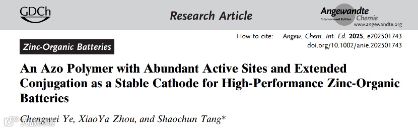 相关工作以“An Azo Polymer with Abundant Active Sites and Extended Conjugation as a Stable Cathode for High-Performance Zinc-Organic Batteries”为题,发表在国际知名期刊Angew.Chem.Int.Ed.上。我校现代工程与应用科学学院唐少春教授为论文通讯作者,该院博士研究生叶成伟为论文第一作者。该项工作得到了国家重点研发计划项目,国家自然科学基金项目,江苏省重点研发计划项目,江苏省碳峰碳中和科技创新专项基金项目资助。
