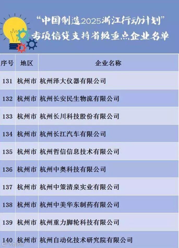 各地经信、人民银行、银监部门将会对此次入选企业信贷的专项保障协调;各地金融机构亦会结合自身特点和优势,制定“中国制造2025浙江行动计划”专项信贷支持方案,为入选的重点企业着力做好各项金融服务。