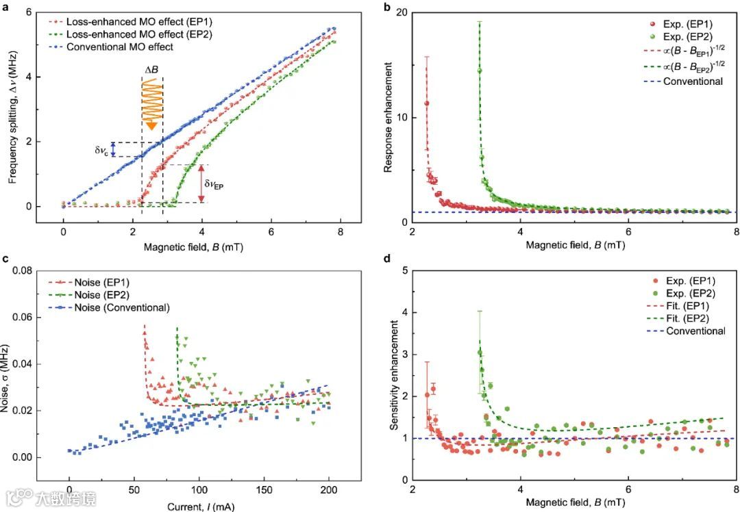该研究构建了一种电调控无源非厄米磁光系统,回答了非厄米物理中广受关注的非厄米传感系统在奇异点附近能否增强测量灵敏度的重要科学问题。开发的可重构磁光器件演示了非厄米增强的测量灵敏度,并且有潜力与光子系统集成,为强磁场背景下进行高灵敏度弱磁场探测铺平了道路。该工作为未来磁光量子效应、非厄米物理以及非厄米高灵敏度传感器研究奠定了基础。