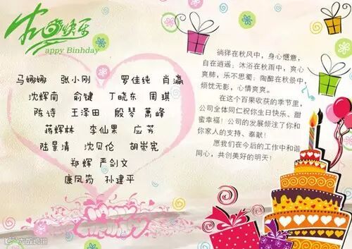 为了加强企业文化建设,增进员工之间的感情和友谊,共同打造一个和谐友爱、团结奋进的团队,每个月为员工举行生日会已经成为公司的一个传统。虽然有几位员工因为出差或其它原因未能到场,但是我们的祝福依旧,希望他们年年有今日,岁岁有今朝,事业蒸蒸日上,快快乐乐每一天!