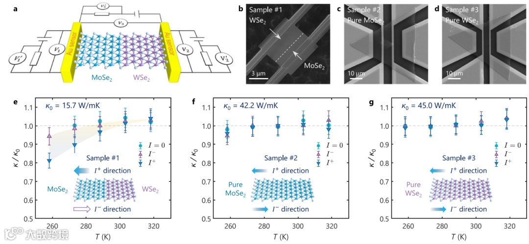 针对这一挑战,上海交通大学鲍华教授团队联合清华大学王海东副教授和吕瑞涛教授,成功开发了一种基于电场调控的二维MoSe₂-WSe₂异质结声子输运调控方法,实现了热导率的可逆调控。研究团队利用化学气相沉积(CVD)方法成功合成了单层MoSe₂-WSe₂横向异质结,并采用H型金电极传感器测量了其热导率。实验发现,在正向偏压下,异质结的热导率明显降低,而在反向偏压下则恢复到较高水平,这一差异在低温下更加显著。例如,在258K时,正向偏压下的热导率比反向偏压降低了13.8%。进一步的理论建模和第一性原理计算揭示了这一现象的本质机制:在正向偏压下,载流子浓度和电子温度显著升高,导致更强的电子-声子散射,使得热导率下降。该研究表明,通过调节外加偏压的大小和方向,可以在−20V至+15V的范围内动态控制热导率,从而实现对声子输运的主动可逆调控。研究人员通过器件模拟和有效的第一性原理模型,进一步量化了电子-声子散射的强度随偏压变化的趋势,并证明了这一方法的普适性。该研究首次在二维半导体异质结中实现了基于电场的可逆声子输运调控,为未来的热管理、半导体热设计以及动态热电转换器件提供了全新的可能性。这一突破性成果不仅为二维材料的热输运研究提供了新的思路,也为智能热管理技术的发展奠定了重要的理论和实验基础。未来,研究团队计划进一步优化异质结结构,提高热导率调控效率,并探索其在下一代电子和光电子器件中的实际应用潜力。研究成果发表在《Nature Communications》上(张琰炯)。