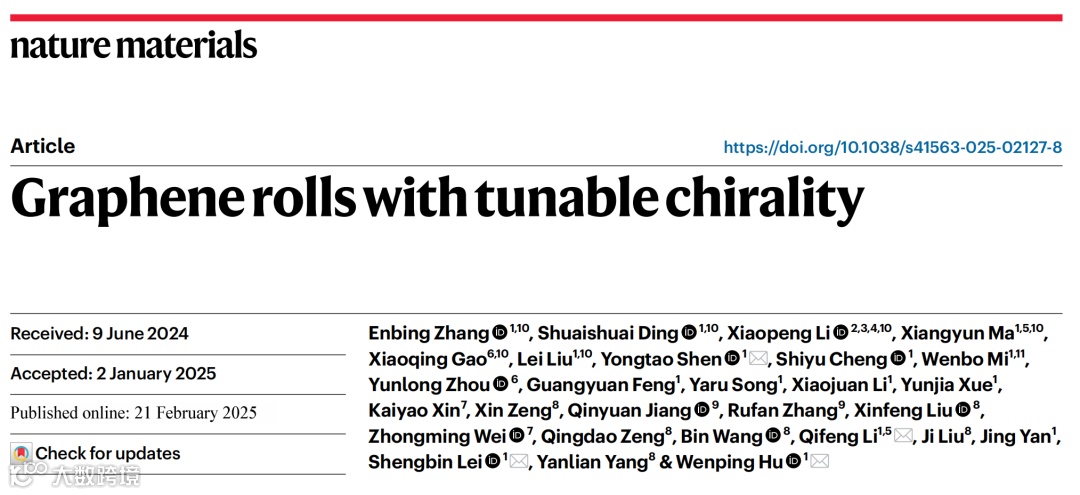 Graphene rolls with tunable chirality,Nature Materials,2025.