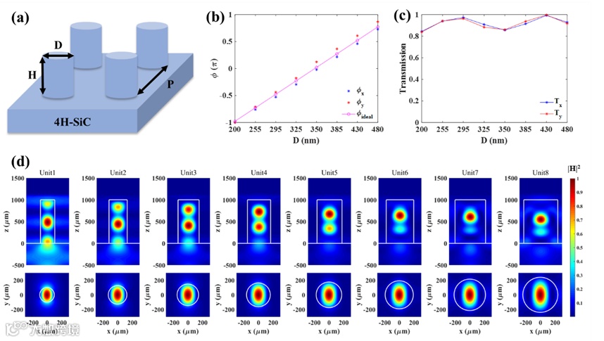 图2:4H-SiC超表面单元的光学响应