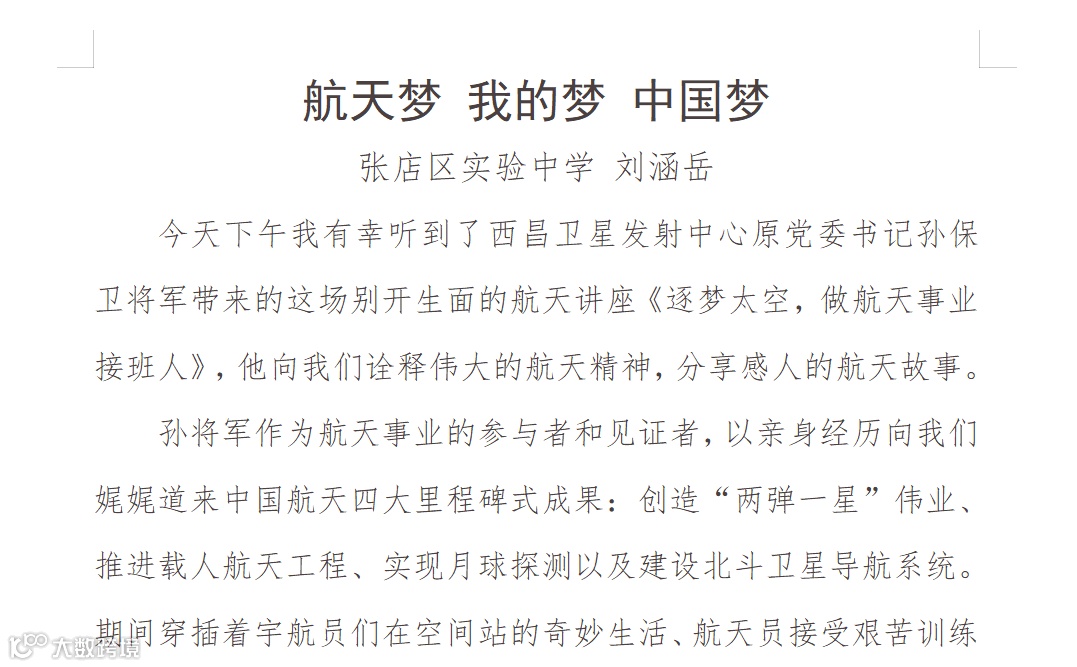 课题:《逐梦太空,做航天事业接班人》
