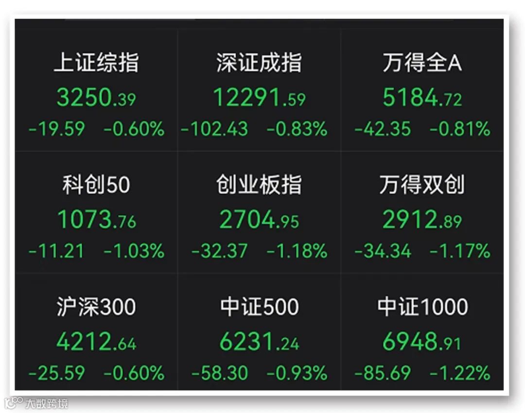 25日A股再度出现调整,三大指数集体下跌。截至收盘,沪指报3250.39点,下跌0.6%;深成指报12291.59点,下跌0.83%;创业板指报2704.95点,下跌1.18%。两市超3000只股票下跌,成交额为8622亿元,较上个交易日缩量792亿元,北向资金净流出33.9亿元。