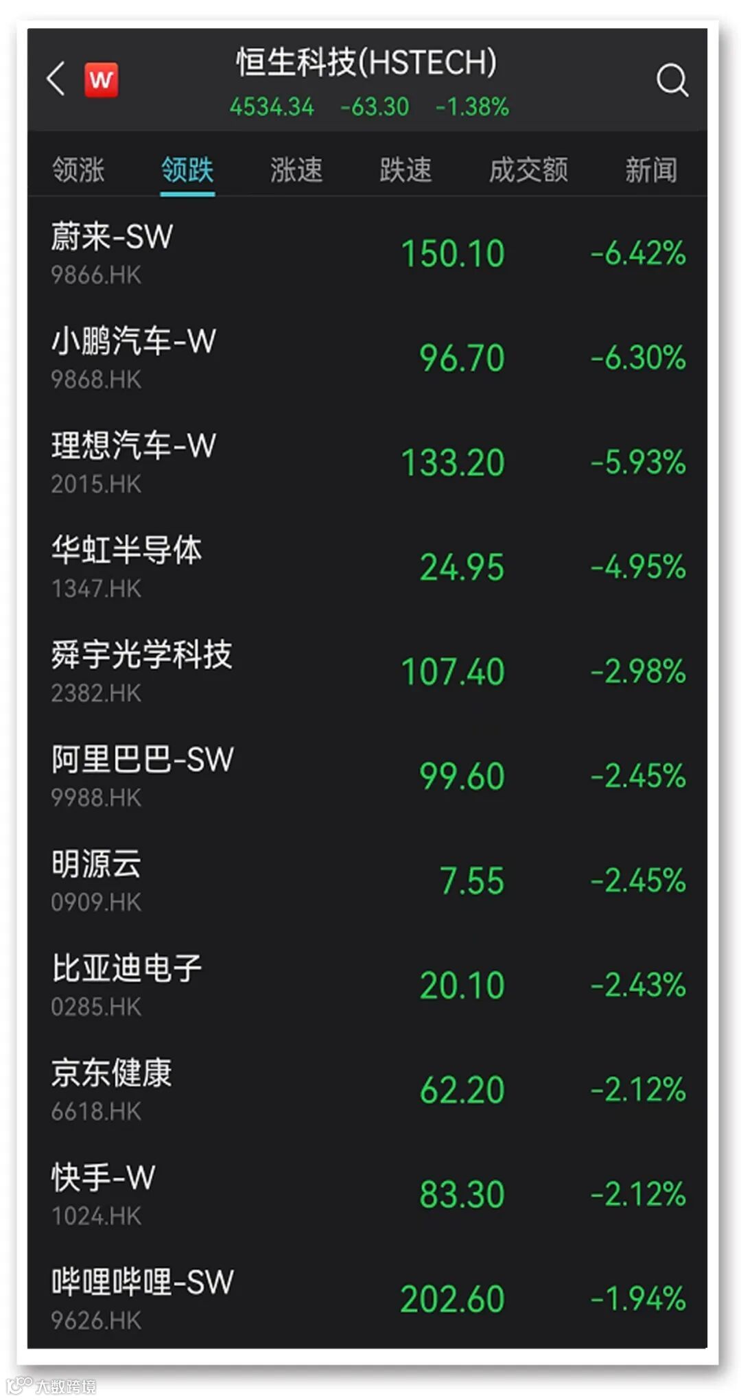 汽车产业链走低 蔚小理领跌