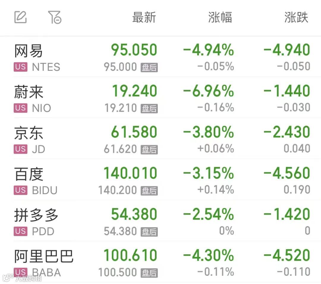 热门中概股多数下跌