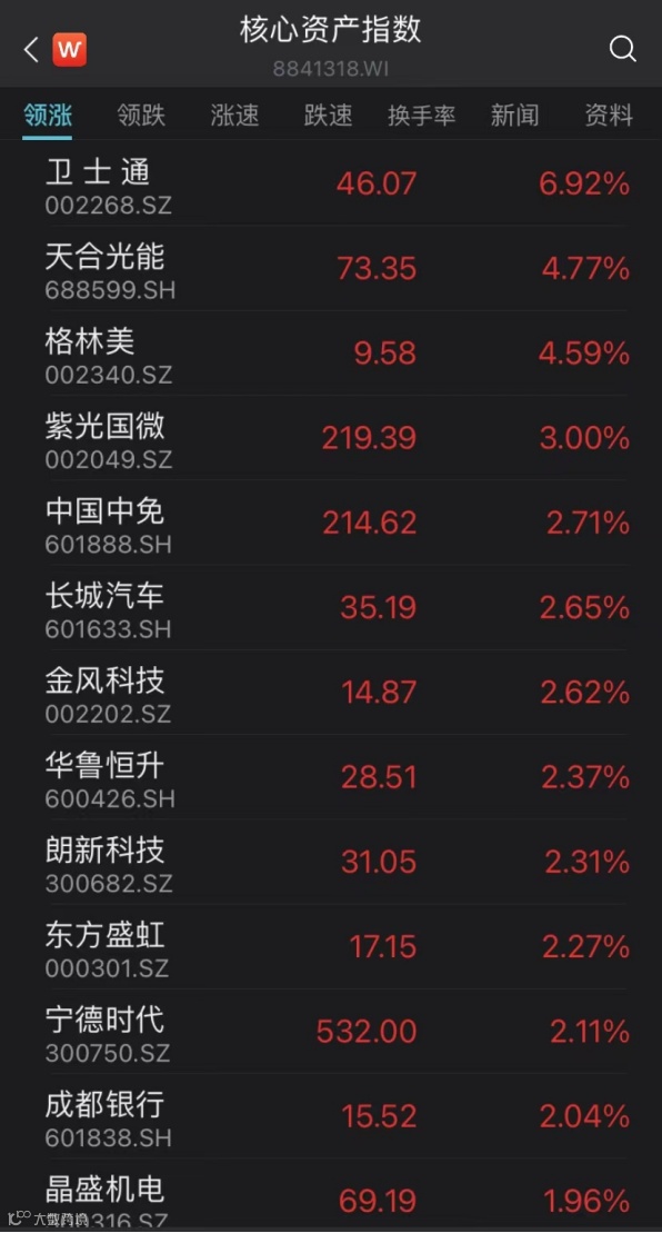 板块内超千亿元市值个股多数上涨,其中宁德时代、中国中免、长城汽车涨超2%,农业银行、比亚迪、洋河股份等涨超1%。