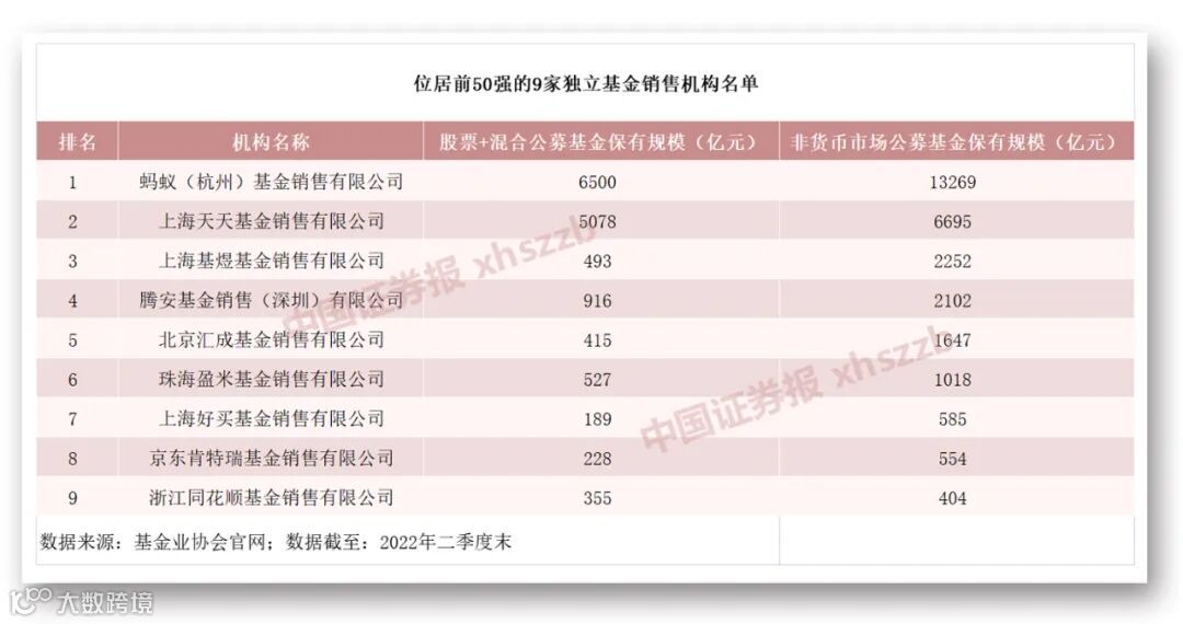独立基金销售机构的公募基金保有规模继续维持着迅猛增长的态势。