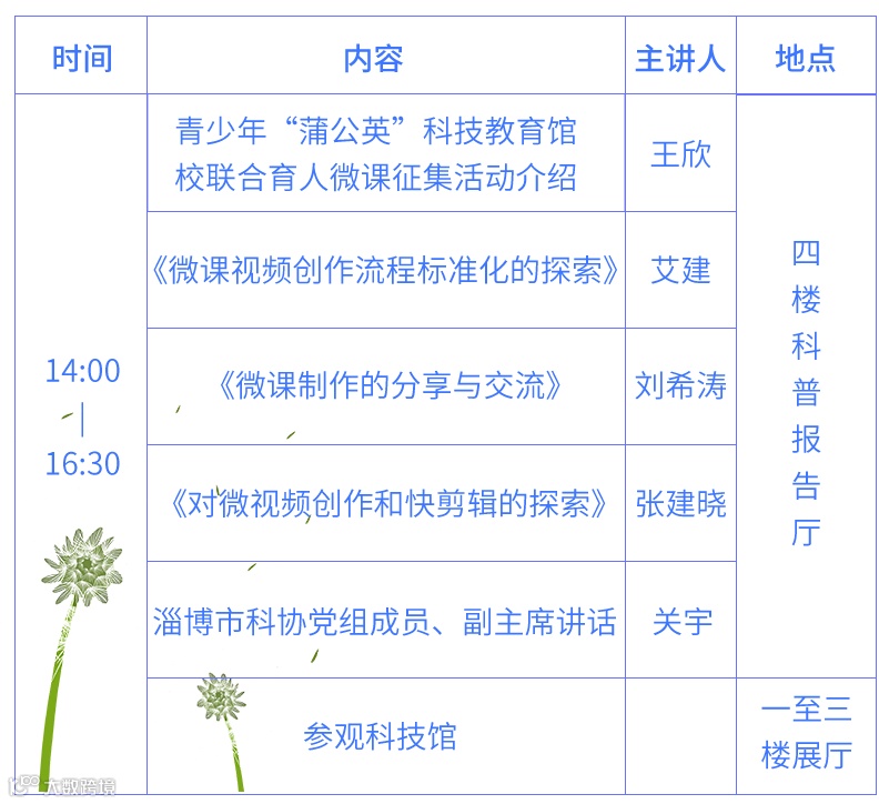 1.请意向参加淄博市青少年“蒲公英”科技教育馆校联合育人微课征集活动的老师加入QQ群:746725320,如有来馆取景需求,提前两天通过QQ群预约来馆录制视频时间。