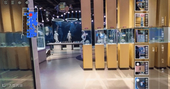 在页面下方的“场景”选择中,可以按照展厅分类选择您想观看的展品,右上角可以选择不同的浏览方式。滑动手机屏幕或转动手机角度,您就可以身临其境地看到展品全角度展示。