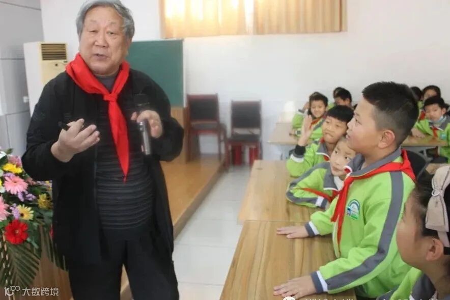 临淄区稷下街道中心小学学生代表为陆教授献上红领巾▲