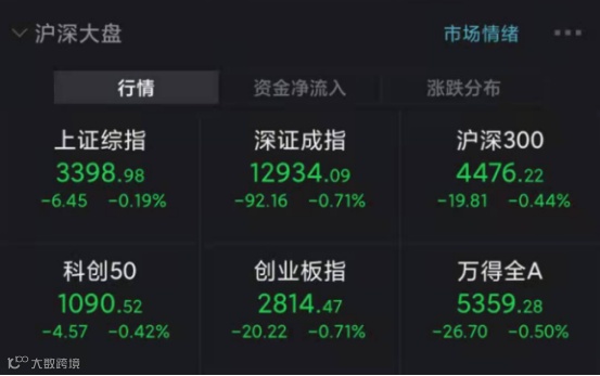 7月5日,上证指数盘初短暂冲高后震荡下滑,随后快速回弹,创业板指2800点关口失而复得。截至午间收盘,上证指数跌0.19%,报3398.98点;深证成指跌0.71%,报12934.09点;创业板指跌0.71%,报2814.47点。