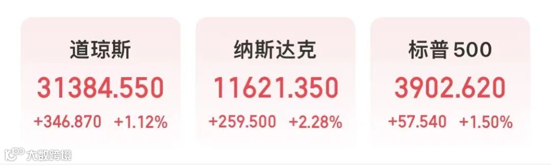 周四,纳指收涨2.28%,报11621.35点,创6月9日以来收盘新高,连涨四日。标普500收涨1.5%,报3902.62点,创6月24日以来收盘新高,自3月29日以来首次连涨四日。道指收涨346.87点,涨幅1.12%,报31384.55点,创6月27日以来收盘新高。