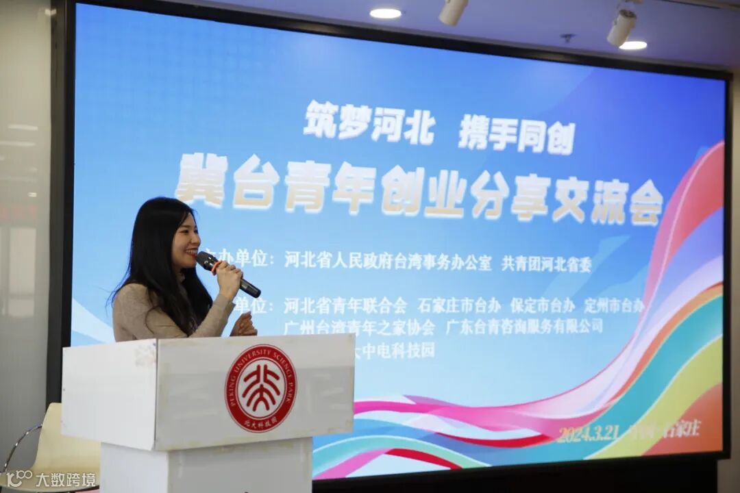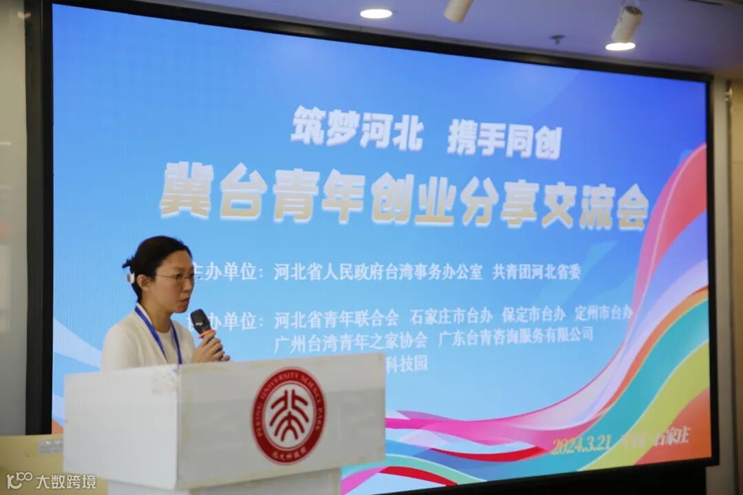 3月21日,由河北省人民政府台湾事务办公室、共青团河北省委主办的“筑梦河北 携手同创”冀台青年创业分享交流会在石家庄北大中电科技园成功举办,省台办副主任霍海斌、交流处处长张澜群、交流处二级调研员韩艳良,省青年联合会秘书长申瑞斌,石家庄市青联副主席李庆赟,广州台湾青年之家会长郑明嘉出席活动,省青联委员代表、省青年企业家及台湾青年创业代表共计40余人参会。