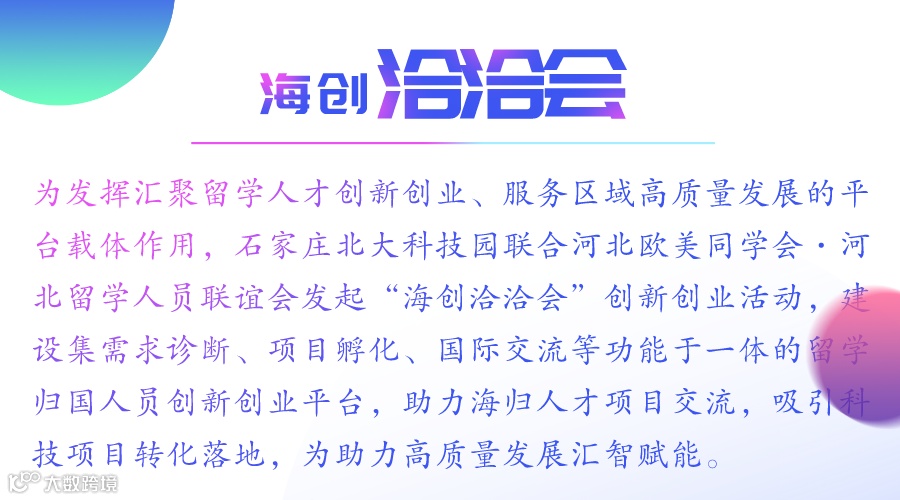 2022年10月29日,由河北欧美同学会 · 河北留学人员联谊会和石家庄北大科技园联合发起的“海创洽洽会”科创沙龙第5期活动在石家庄北大科技园举行。