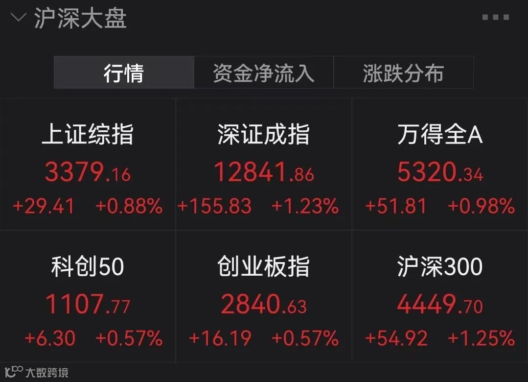 Wind数据显示,截至午间收盘,上证指数、深证成指、创业板指分别上涨0.88%、1.23%、0.57%。从行业板块看,商贸零售、食品饮料、社会服务等多个消费板块共振上涨,“免税茅”中国中免盘中一度涨停并创阶段新高,煤炭、有色金属等资源股亦走强,A股千亿汽车巨头长安汽车股价创历史新高。