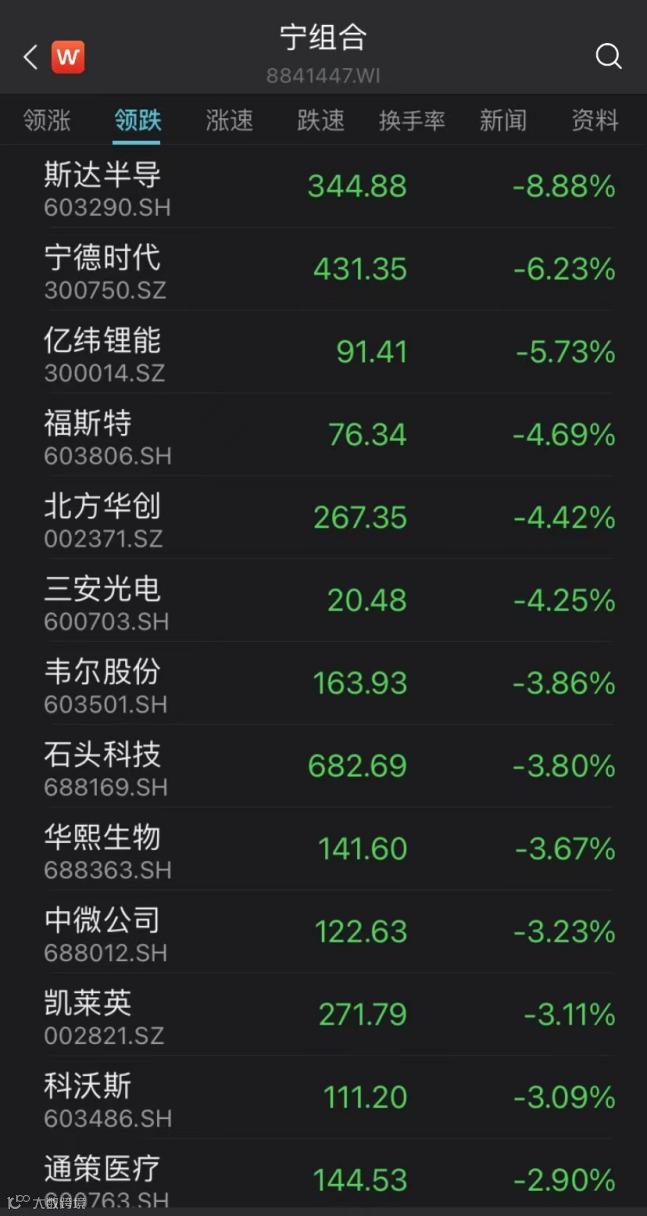 6月9日,Wind“宁组合”跌3.06%。成分股方面,除了隆基绿能涨超1%之外,其他均下跌,其中斯达半导盘中一度逼近跌停,盘终跌超8%,宁德时代跌超6%,亿纬锂能跌超5%,福斯特、北方华创、三安光电跌超4%。