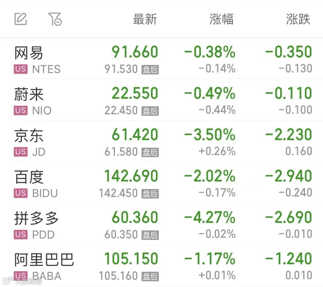 热门中概股多数走低