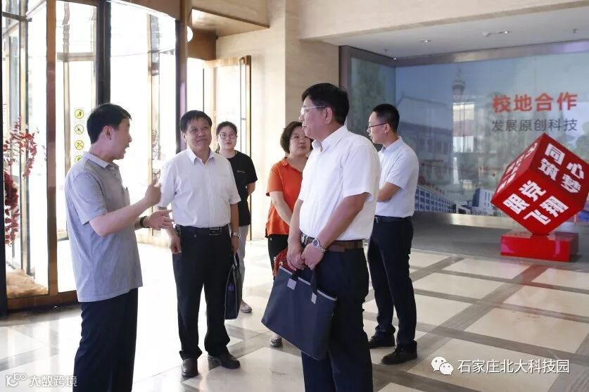 2019年7月31日,石家庄市委统战部常务副部长张明其、副部长孙书领、党外知识分子处处长王金梅,裕华区委常委、统战部长王金柱一行莅临石家庄北大科技园考察调研,石家庄北大科技园副总经理关宏帅出席接待。