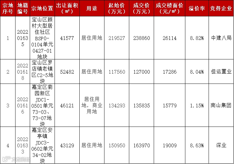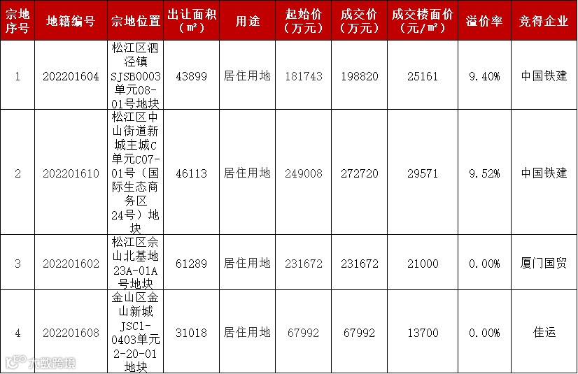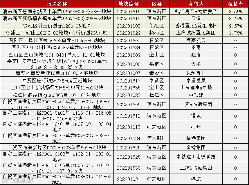 6月8日,经历五个工作日的竞拍后,上海2022年首轮集中供地收官。