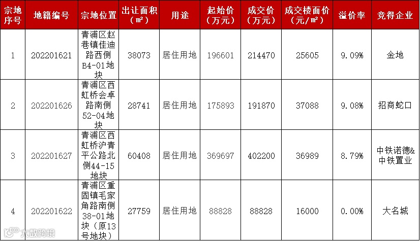 根据中指研究院统计数据,36宗地块中,底价成交19宗,占比52.8%;17宗地块为溢价成交,占比47.2%。