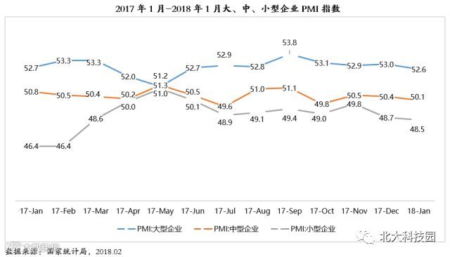 大、中、小型企业景气度均有所回落,小型企业仍处于临界点以下。大型企业PMI为52.6%,比上月回落0.4个百分点,继续在扩张区间内平稳运行;中型企业PMI为50.1%,比上月回落0.3个百分点;小型企业PMI为48.5%,比上月下降0.2个百分点,且已连续7个月位于临界点以下的低景气区间。