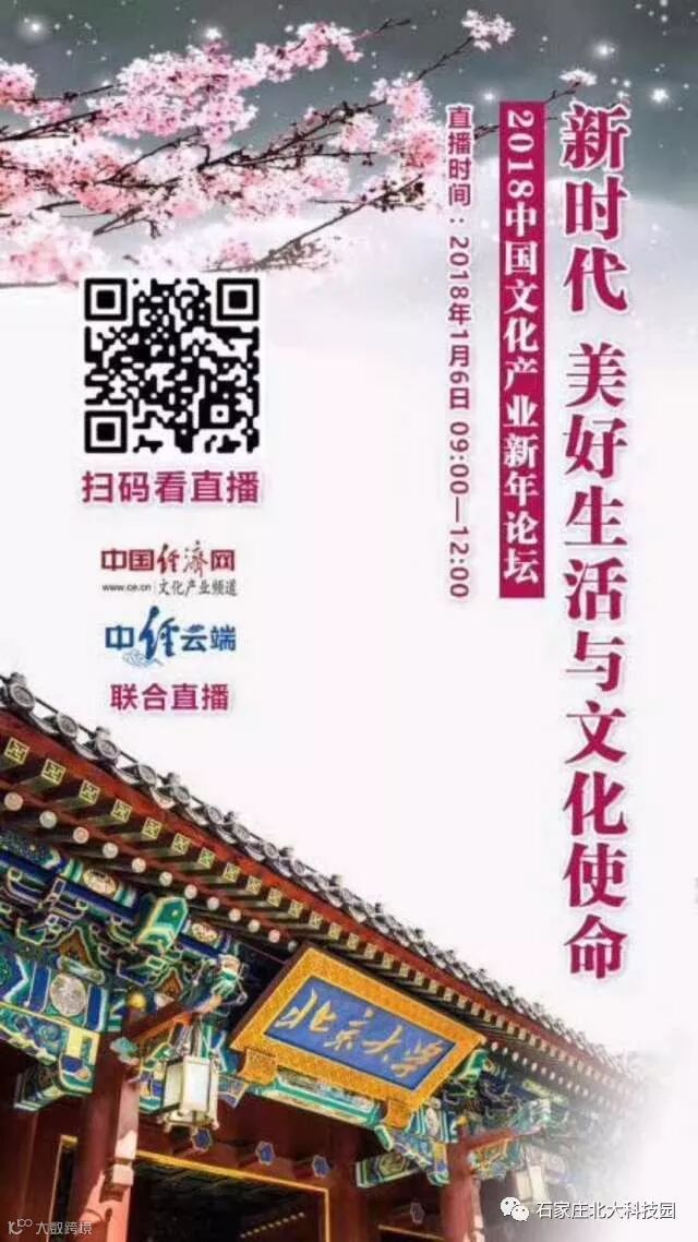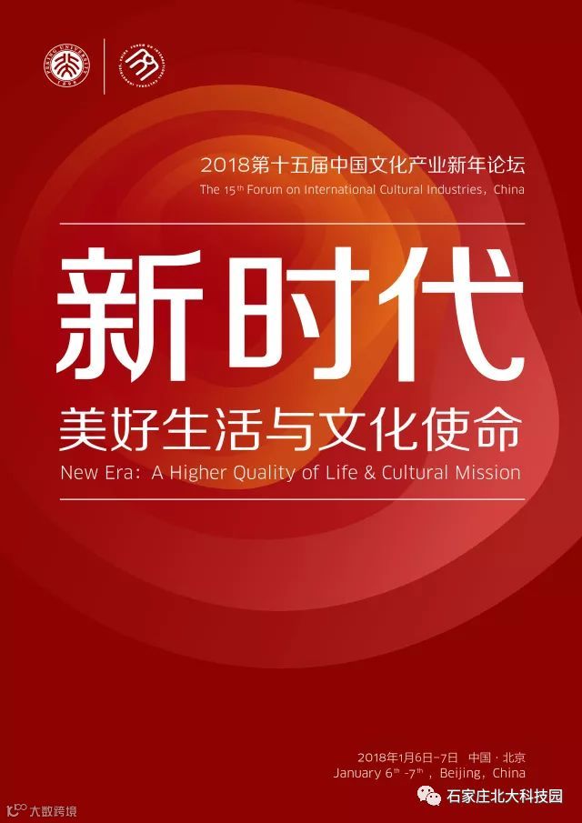 1月6日,2018中国文化产业新年论坛将在北京大学举行。主论坛以“美好生活与文化使命”为主题,广邀文化产业领域内主管部门负责同志、国内外知名专家学者和业界精英齐聚一堂,共同探讨在建设社会主义文化强国进程中,文化体制机制的改革创新以及文化产业发展的新模式、新业态。力求通过文化资源的全域开发,推动文化创意融入人民社会生活,激发全民族文化创新创造活力,以文化之力构建新时代的新蓝图,实现人民对美好生活向往。