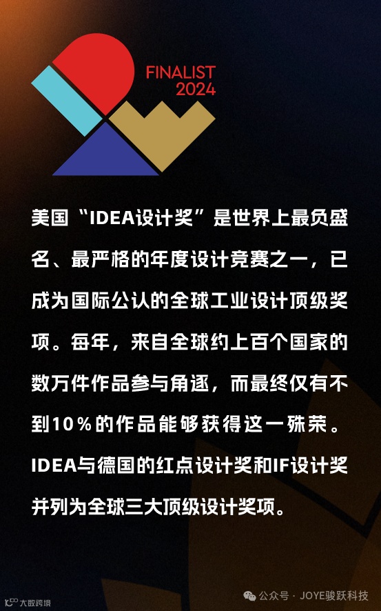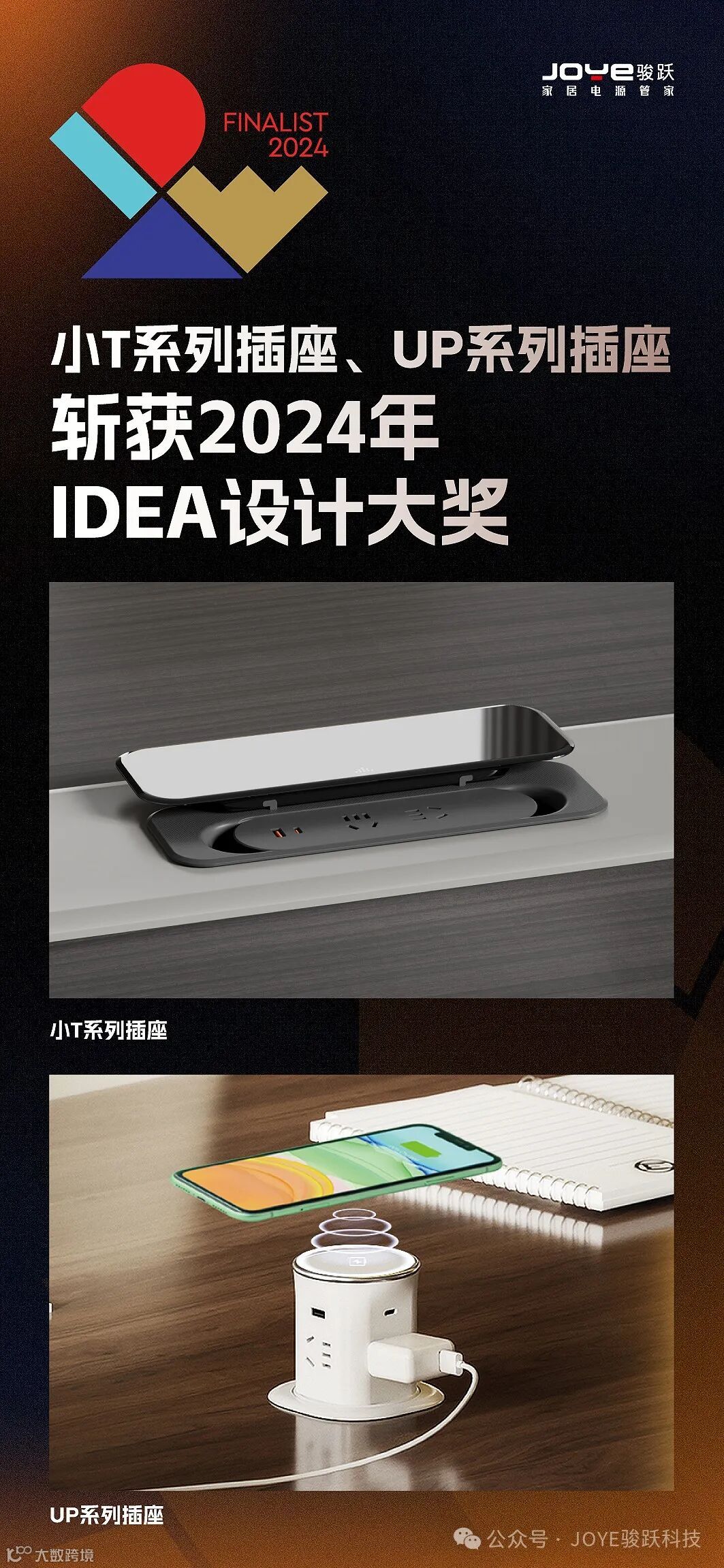 骏跃科技新品小T系列插座和UP系列插座在全球众多参赛作品中脱颖而出,荣获了享有盛誉的2024年IDEA设计大奖。这一荣誉不仅是对骏跃科技创新能力和设计水平的高度认可,更是我们不断追求卓越道路上的重要里程碑。