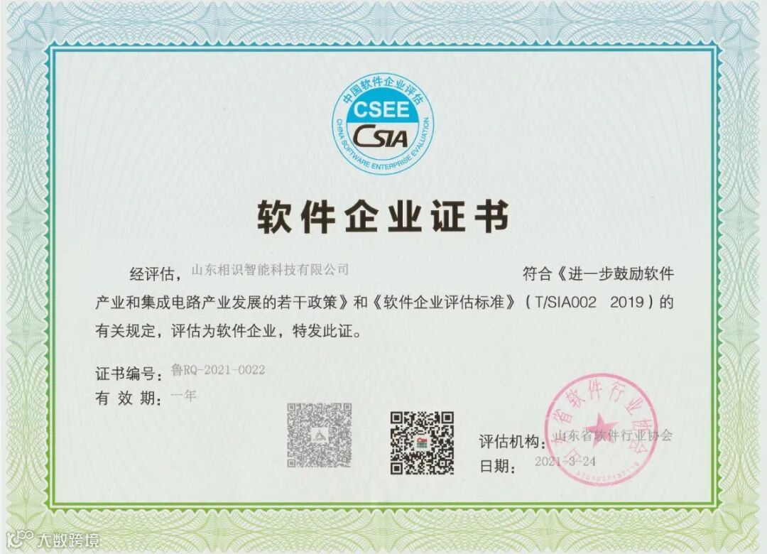 山东相识智能科技有限公司荣获“双软企业”资质认证。在未来的发展中 ,相识智能将秉承“真诚、用心、开放、创新”的企业精神,与时俱进,再接再励,积极响应国家科技创新的号召,在人工智能和大数据领域持续深耕,为社会发展和人文进步做出自己应有的贡献。