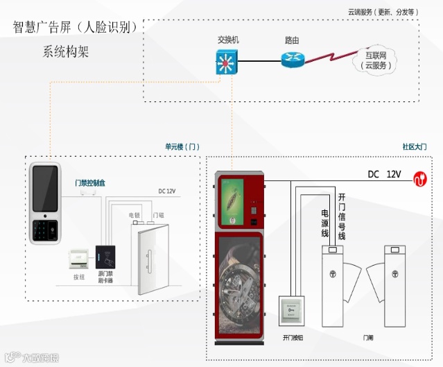 人脸识别广告屏属于智慧社区构建的重要组成部分,能够兼具门禁控制、访客管理、社区通告、广告增值等多种功能,主要适用于封闭管理社区、办公楼宇、政府机关等场景,尤其能够满足物业管理公司的多重需求。