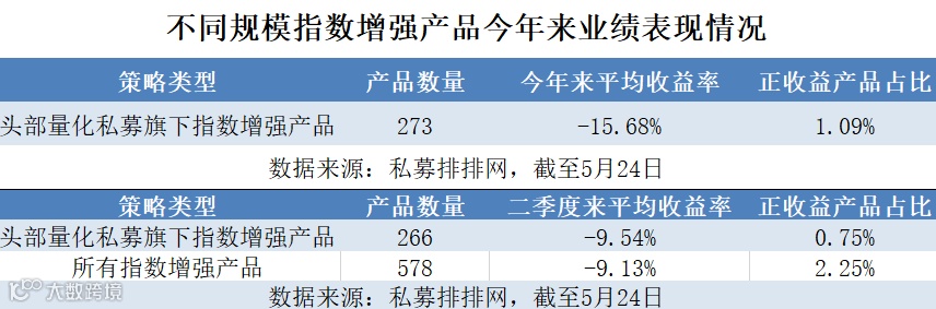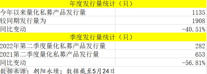 在量化指数增强产品方面,据私募排排网不完全统计,截至5月22日,今年二季度以来共发行量化指数增强产品49只,比2021年同期下降了57.39%。