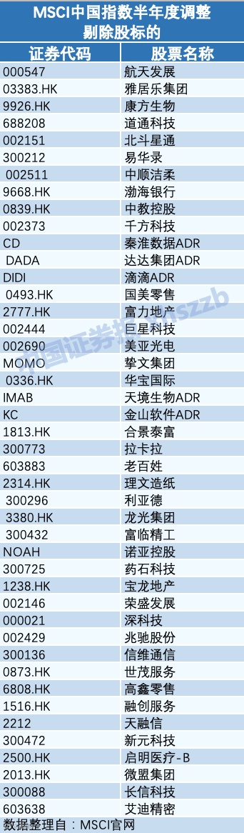 其中,包括滴滴ADR、天境生物ADR、金山软件ADR在内的中概股被剔除;今年以来,锂业龙头富临精工股价持续下跌导致市值大幅缩水,在本次半年度调整中也遭到MSCI中国指数剔除。