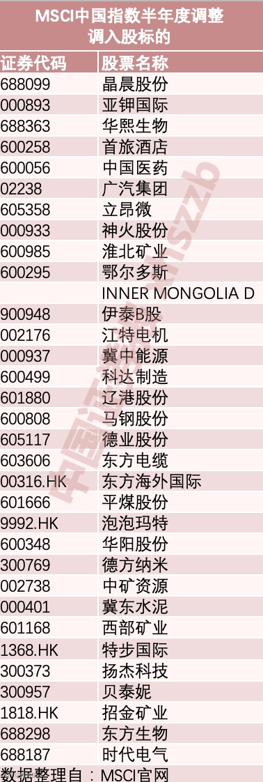 本次MSCI半年度指数调整将于5月31日收盘后正式生效。