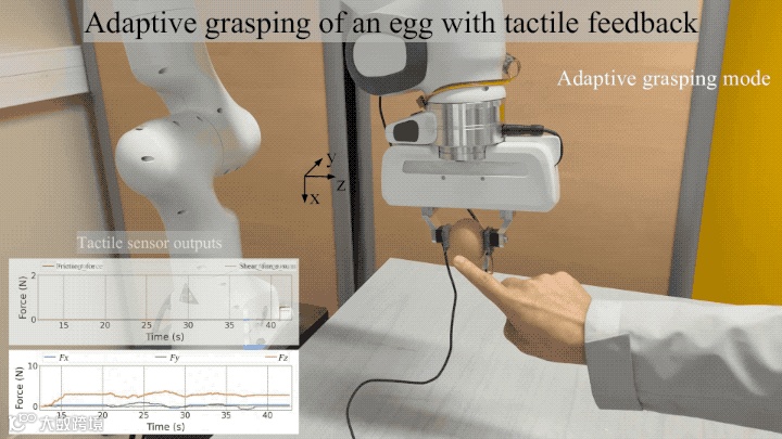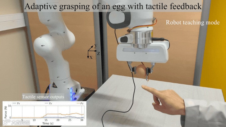 另外,通过编程,可以切换机械臂示教模式和自适应抓取模式(根据切向力实时动态调整法向夹持力)。