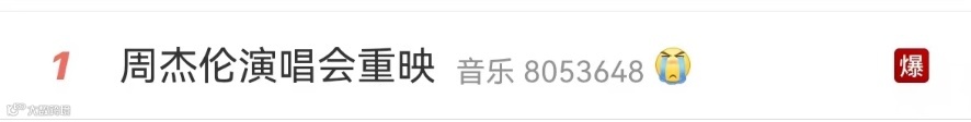 5月20日晚,周杰伦《魔天伦2013演唱会》在微信视频号、腾讯音乐、QQ音乐线上重映,相关话题持续霸占热搜榜第一位。