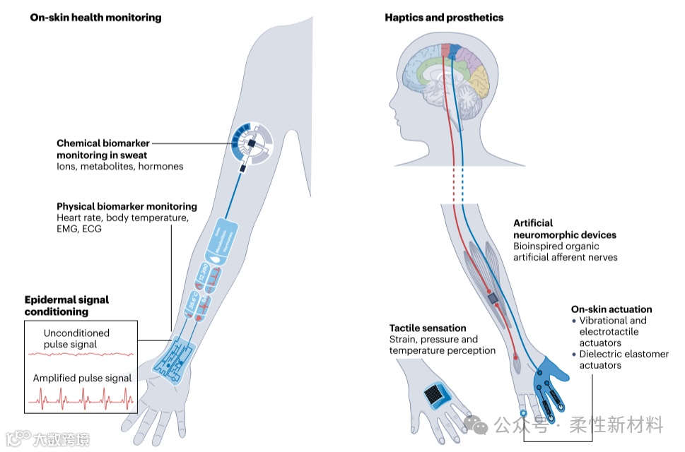 图4:基于柔软可拉伸有机电子材料和器件的全身健康监测系统